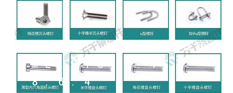 圓柱頭(cheese head) 7.圓頭(round head)8.盤頭(pan head)9.沉頭 countersunk head (flat head) 10.半沉頭 raised countersunk head ( 槽型: 1.菲利普2.十/一字3.一字4.內三角5.內角四方6.十字 7.米字8.花形9.梅花形10.花形一字11.特形12.內六角 緊固件的產品知識以及產品涉及標準 緊固件的產品